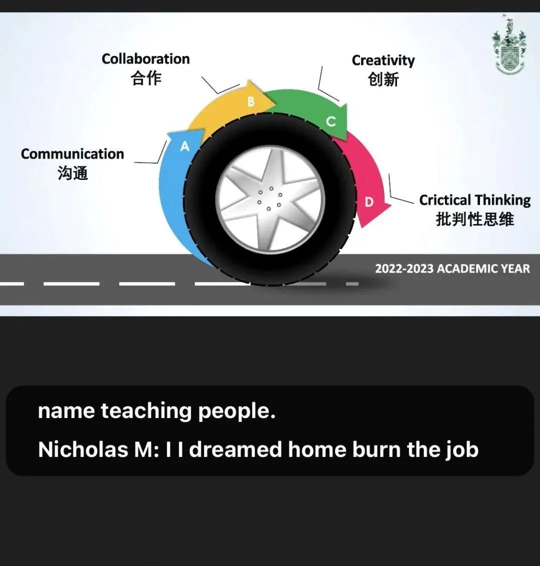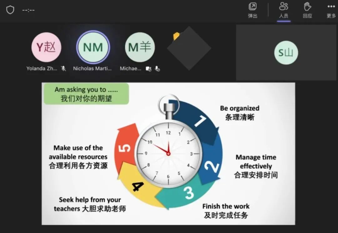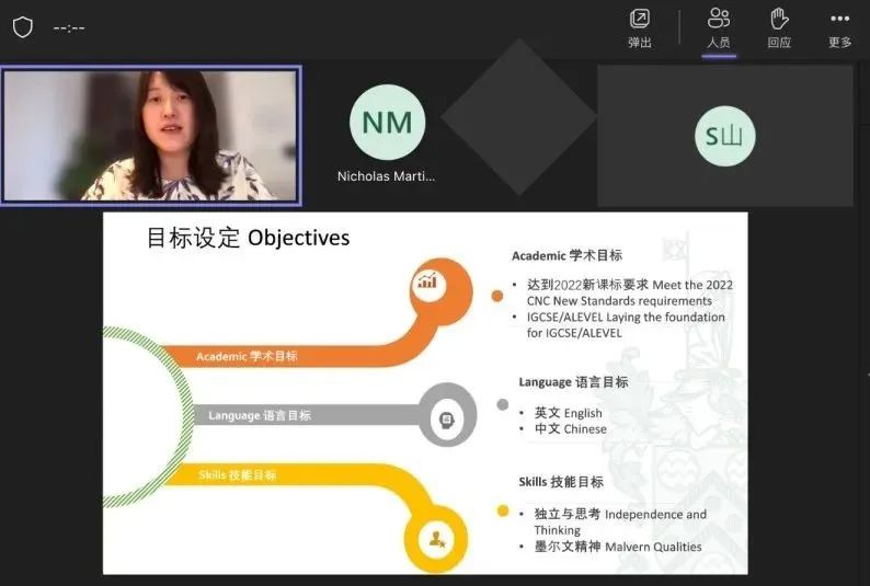 中学学术负责人斯蒂芬·恩甘加在线上会议中提到,今年的目标即是寻求新突破。为达成目标,斯蒂芬·恩甘加先生提出了本学期的整体4大要求:沟通、合作、创新、批判性思维。