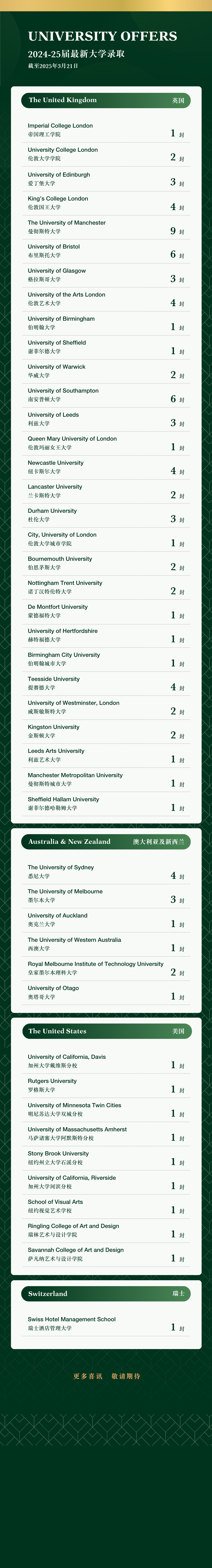 2025 University Offers (Data as of 31 March 2025)